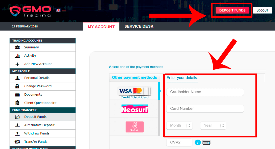 Once you have signed up and you have an account, the next step is to fund that account. Your account manager will help you out. You will be expected to deposit at least $250 or £180, using a credit card such as American Express, MasterCard, and Visa.