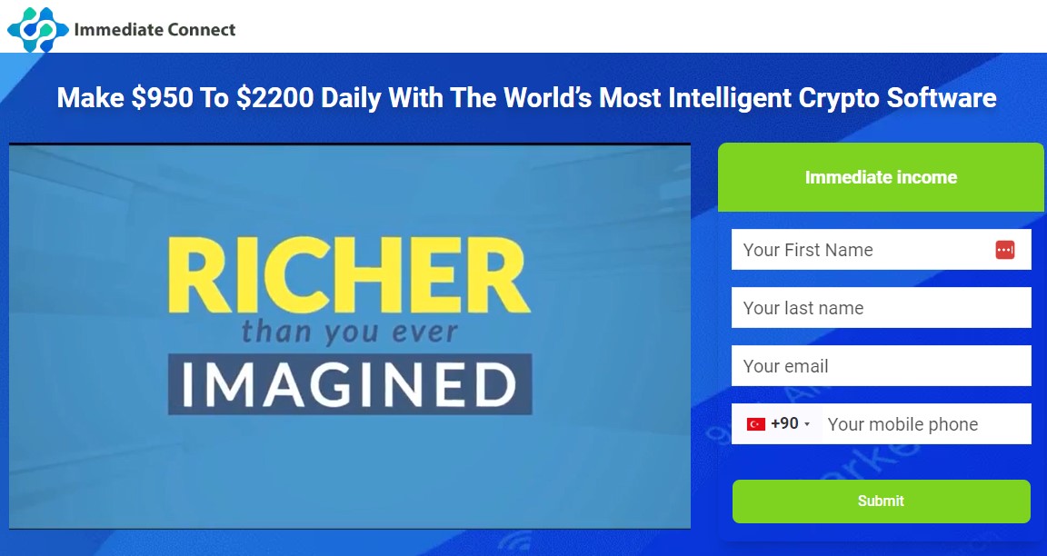 You will start by watching a video ad about Immediate Connect, then sign up by submitting your email address and name just below that video.