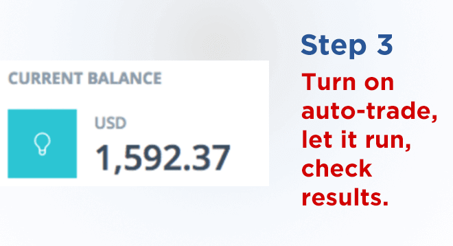 After funding the account, please navigate to the Auto-Trader segment of the Immediate Connect software to set your trade size to the required $50 and enable it. The software will start trading with immediate effect, and you can leave it to trade as you go about your work. For Fiona, when she came back and checked her balance, it was reading $1,592.37 or £1,127 just after one hour from the £180 she had initially invested.